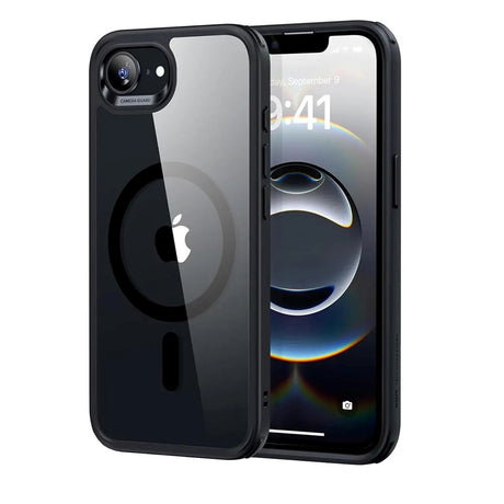 - iPhone 14 / 13 - Classic Hybrid Cover - MagSafe Kompatibel - Gennemsigtig / Sort