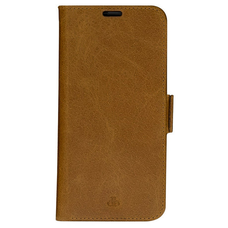iPhone 14 Pro Max Lynge Ægte Læder Magnet Flip Cover - Tan