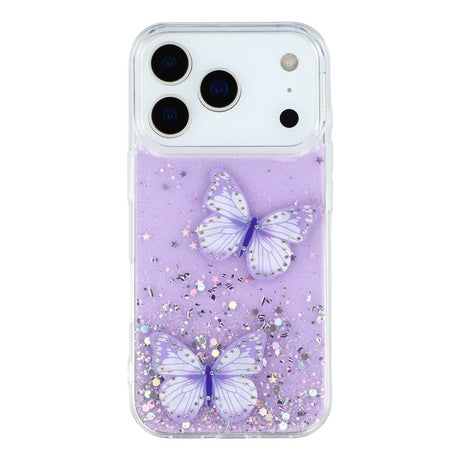 iPhone 17 Pro Fleksibelt Plastik Mobil Cover m. Sommerfugle - Gennemsigtig / Lilla