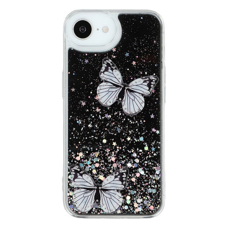iPhone 16e Fleksibelt Plastik Mobil Cover m. Sommerfugle - Gennemsigtig / Sort
