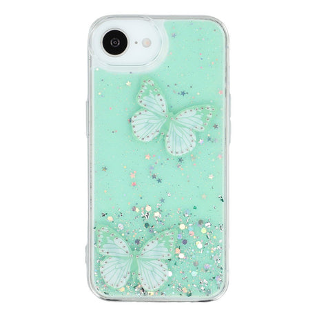 iPhone 16e Fleksibelt Plastik Mobil Cover m. Sommerfugle - Gennemsigtig / Grøn