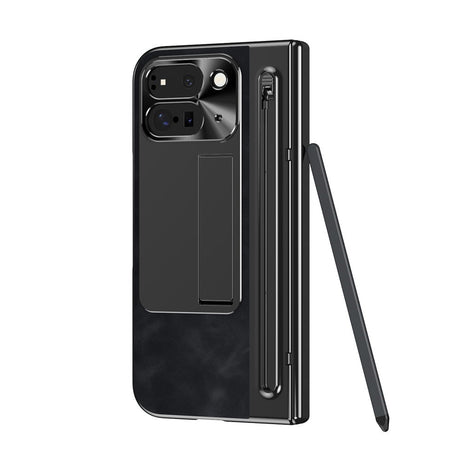 Google Pixel 10 Pro Fold Mobil Cover m. Kunstlæder Bagside - Kick Stand - Stylus Holder - Sort