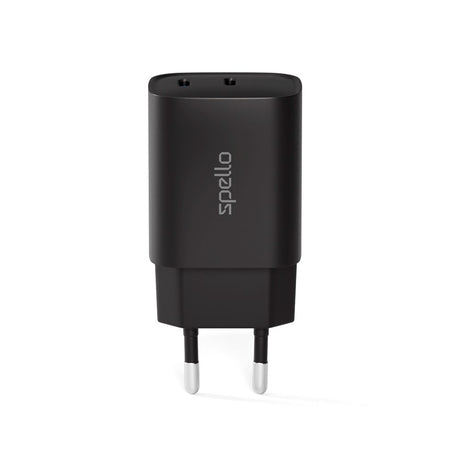Vægoplader m. 20W - 1 x USB-A (QC) & 1 x USB-C (PD) - Sort