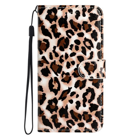 iPhone 17 Imiteret Læder Flip Cover m. Pung & Rem - Leopard