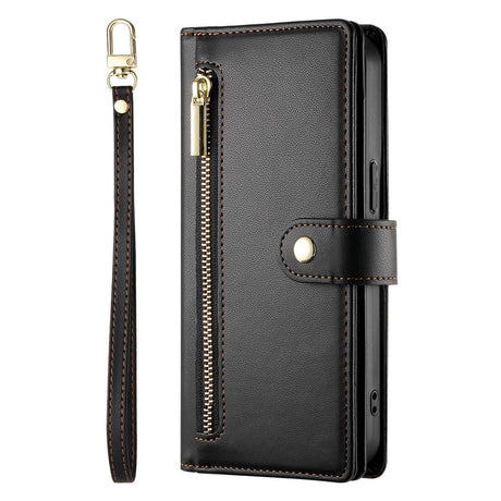 iPhone 17 Pro Max Flip Cover - Indbygget Kortholder & Lynlåslomme & Strop - Sort