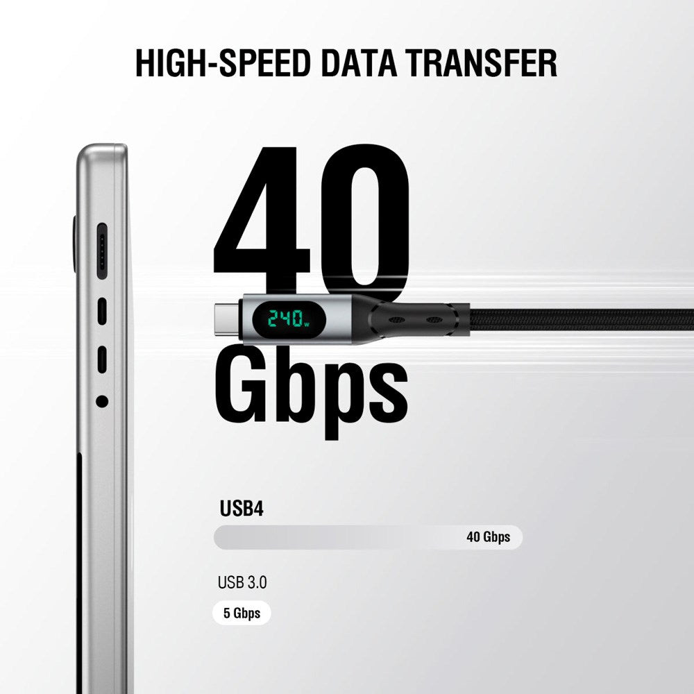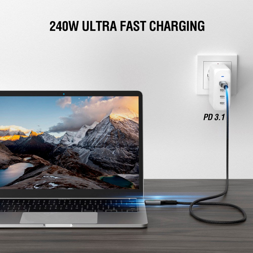 Oplev 4smarts DigitCord Enterprise USB-C Kablet – en alt-i-ét-løsning med 240W lynopladning, 40 Gbps dataoverførsel og 8K videooutput.