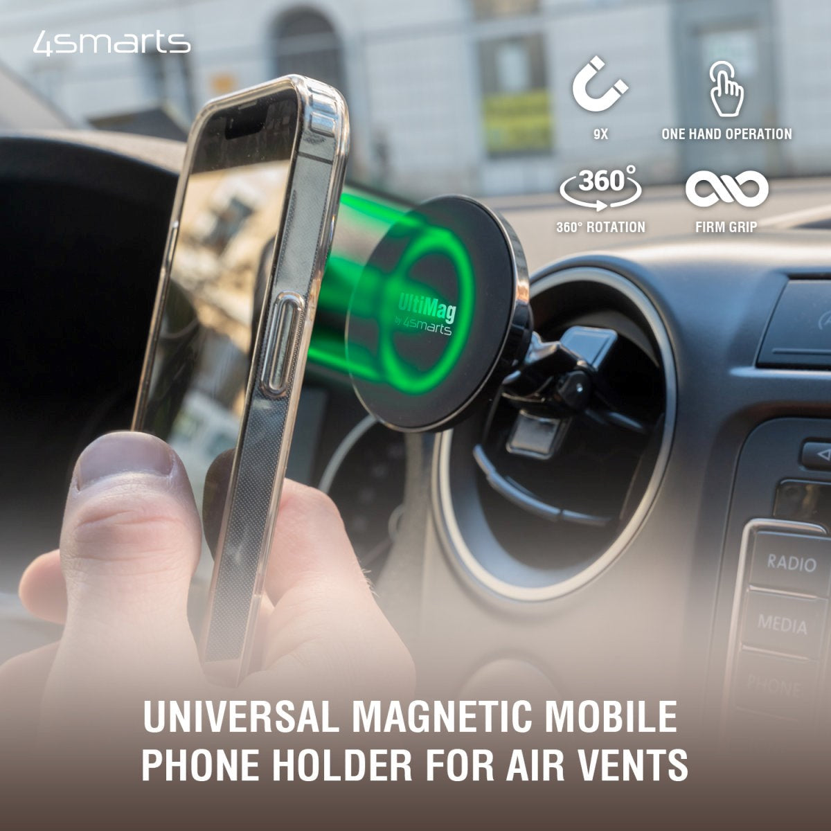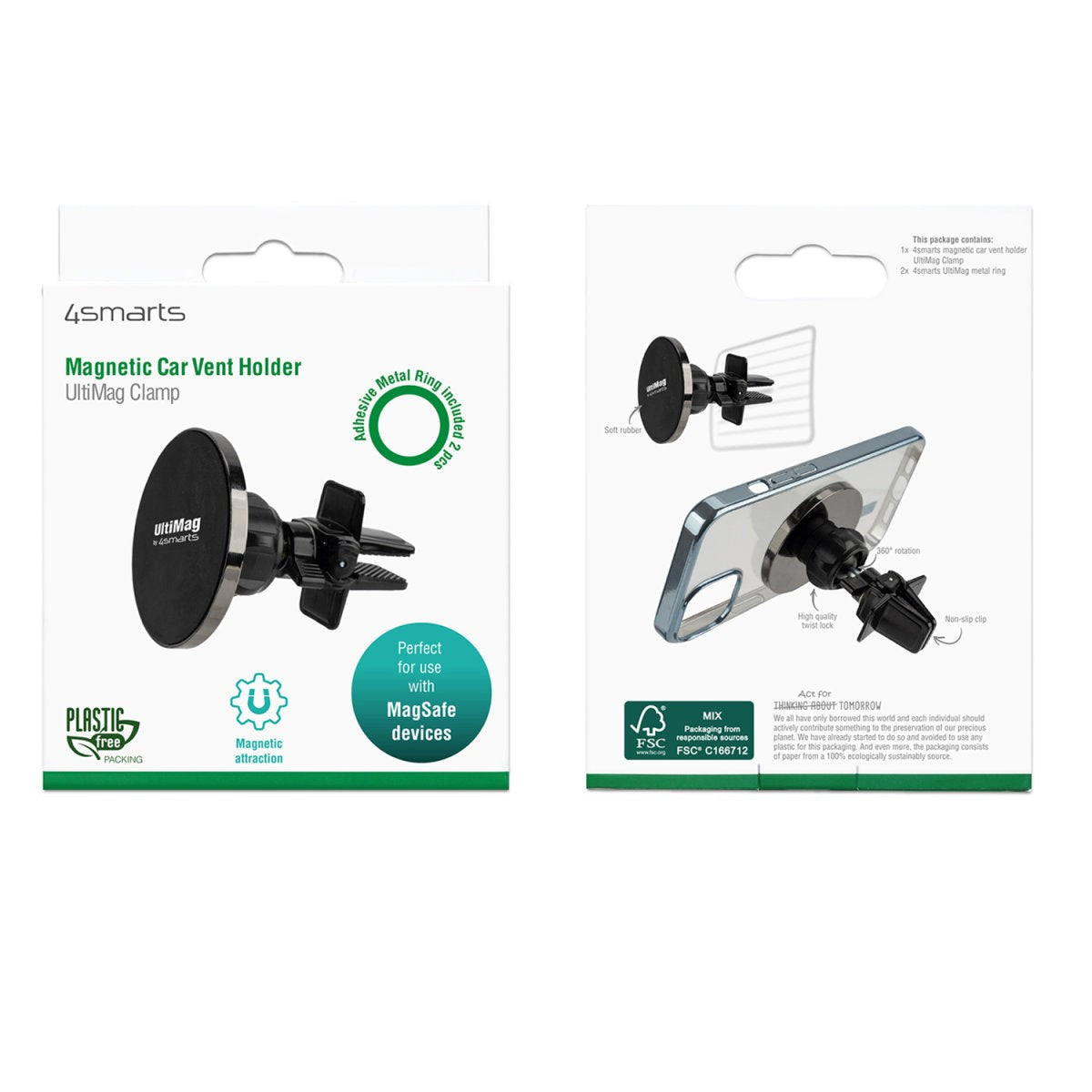 UltiMag Clamp Magnetisk Mobilholder til Bil - MagSafe Kompatibel - Sort