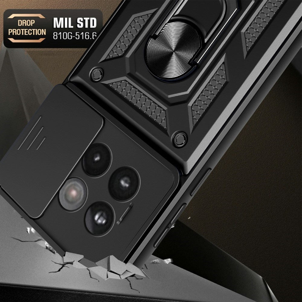 Dette slidstærke cover i TPU og plast giver effektiv beskyttelse mod stød og ridser. Overfladen er anti-fingeraftryk og behagelig at holde. Det roterende kickstand understøtter håndfri brug med flere visningsvinkler, mens det flytbare linseskjold beskytter kameraet mod skader.