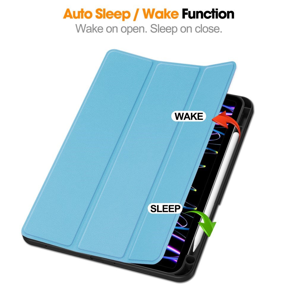 iPad Pro 11" (2025 / 2024) Tri-Fold Kunst Læder Tablet Cover m. Apple Pencil Holder - Blå