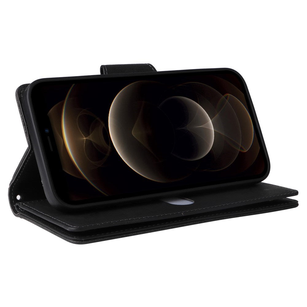 iPhone 12 Pro Max Cover med Kortholder & Lynlåslomme - Sort