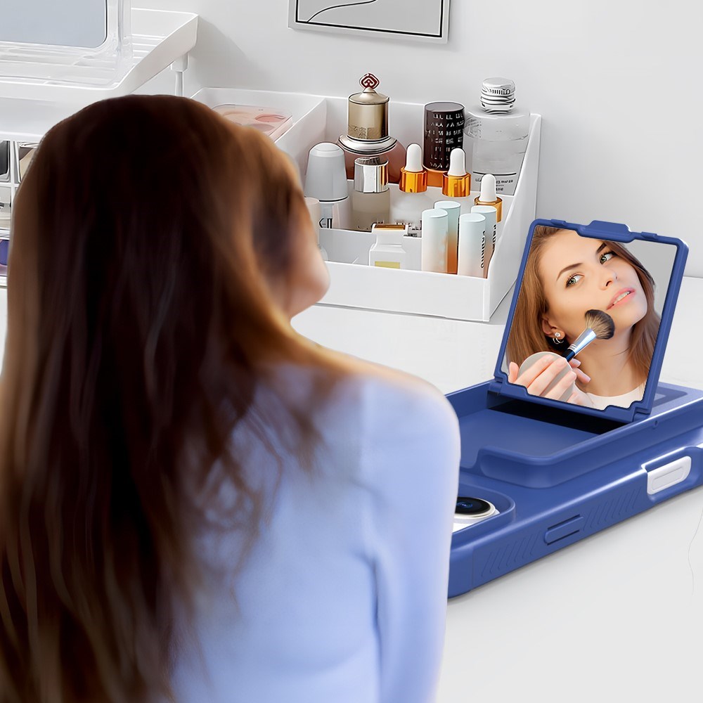 Indeni kortholderen finder du også et diskret spejl – perfekt til et hurtigt tjek af hår eller makeup. Når spejlet er slået ud, kan det desuden også bruges som en kickstand, således telefonen kan stå af sig selv - perfekt til f.eks. at se film.