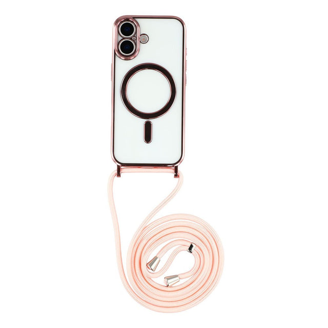 iPhone 17 Fleksibelt Plastik Mobil Cover - inkl. Justerbar Strop - MagSafe Kompatibel - Gennemsigtig / Lyserød