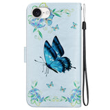 iPhone 16e Kunst Læder Mobil Cover m. Pung & Strop - Blå Sommerfugl