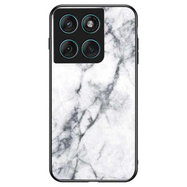 Motorola Edge 60 / Edge 60 Fusion Plastik Mobil Cover m. Glasbagside - Hvid Marmor