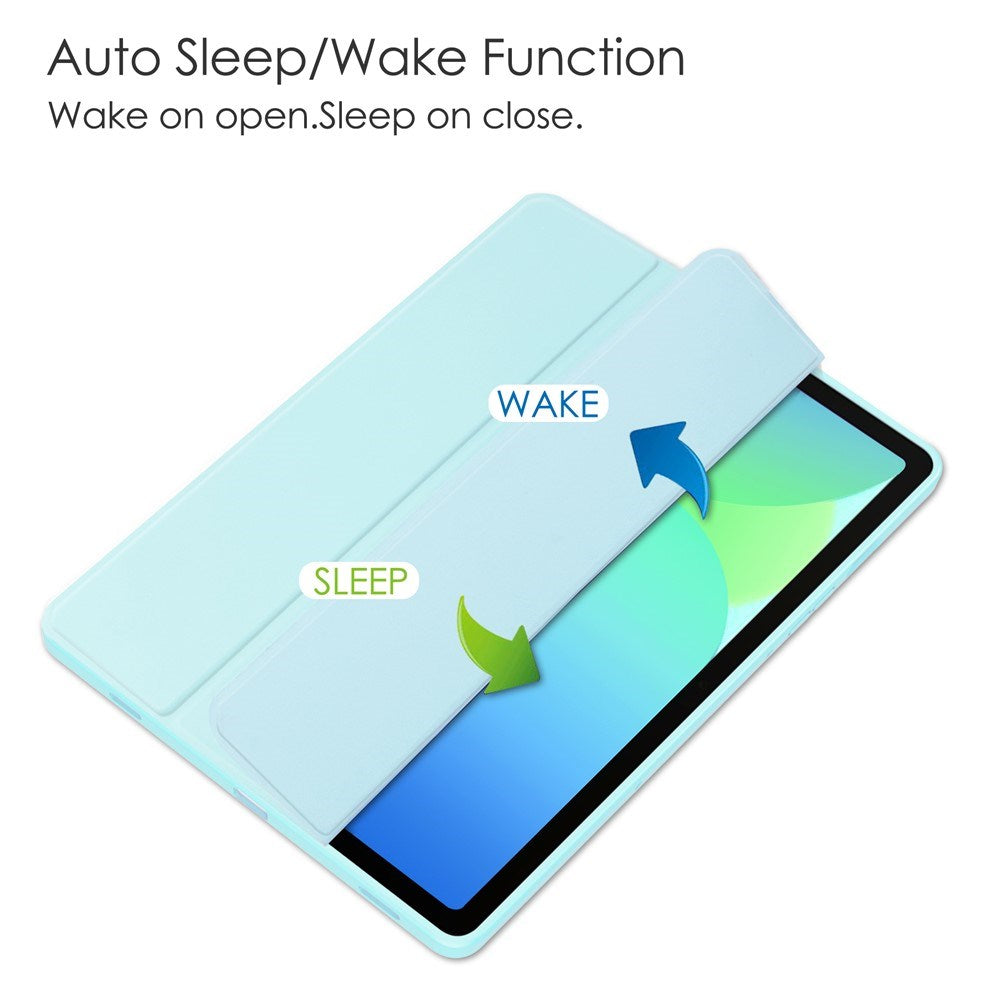 Derudover understøtter dette Samsung Galaxy Tab S10 Lite / S10 FE / S9 FE cover den smarte wake-up / sleep-funktion, så skærmen automatisk tænder, når coveret åbnes, og slukker igen, når det lukkes.