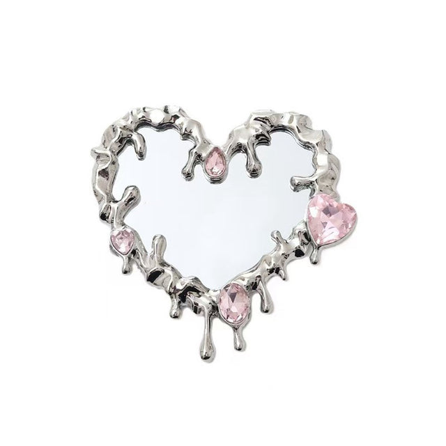 Hjerteformet Spejl med Smelte-Effekt til Mobil - Sølv / Lyserød