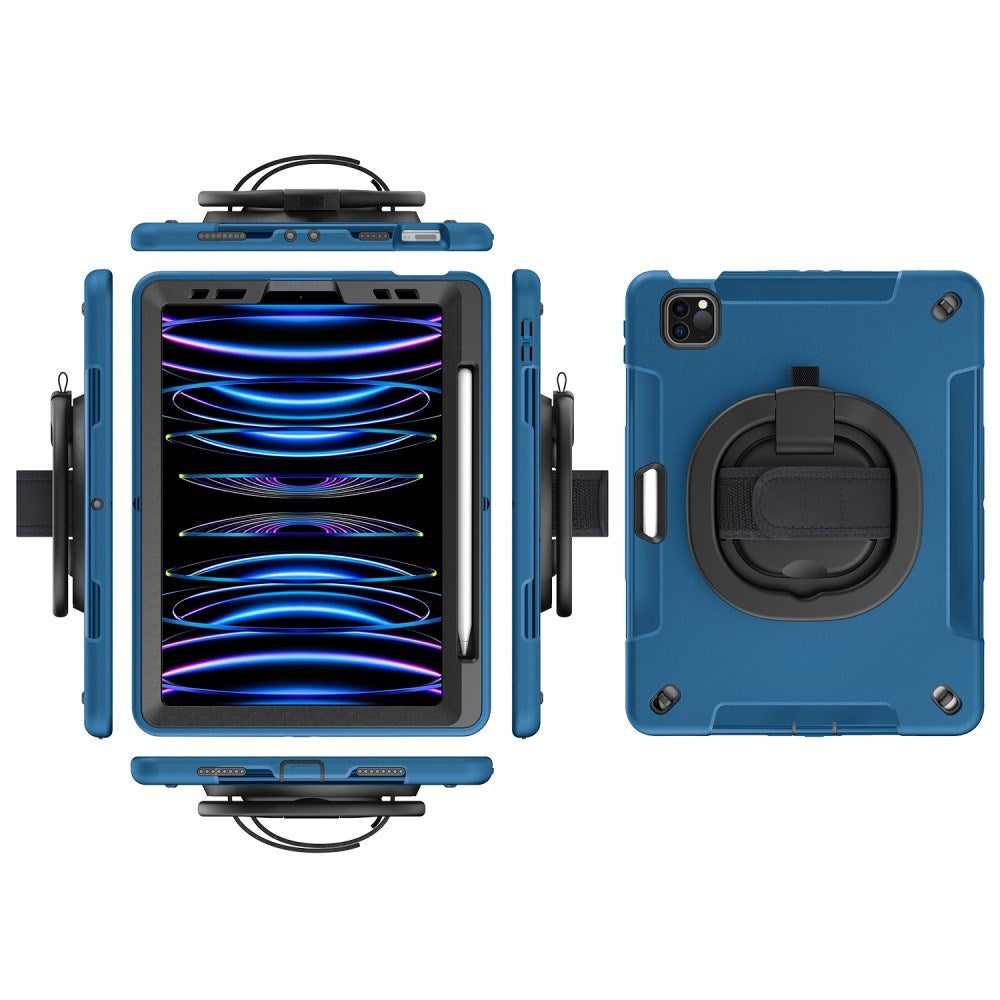 iPad Air 10.9-11" (2025-2020) / Pro 11" (2022-2018) EIDERWOOD Håndværker Cover med Beskyttelsesfilm, Apple Pencil Holder & Håndholder - Blå