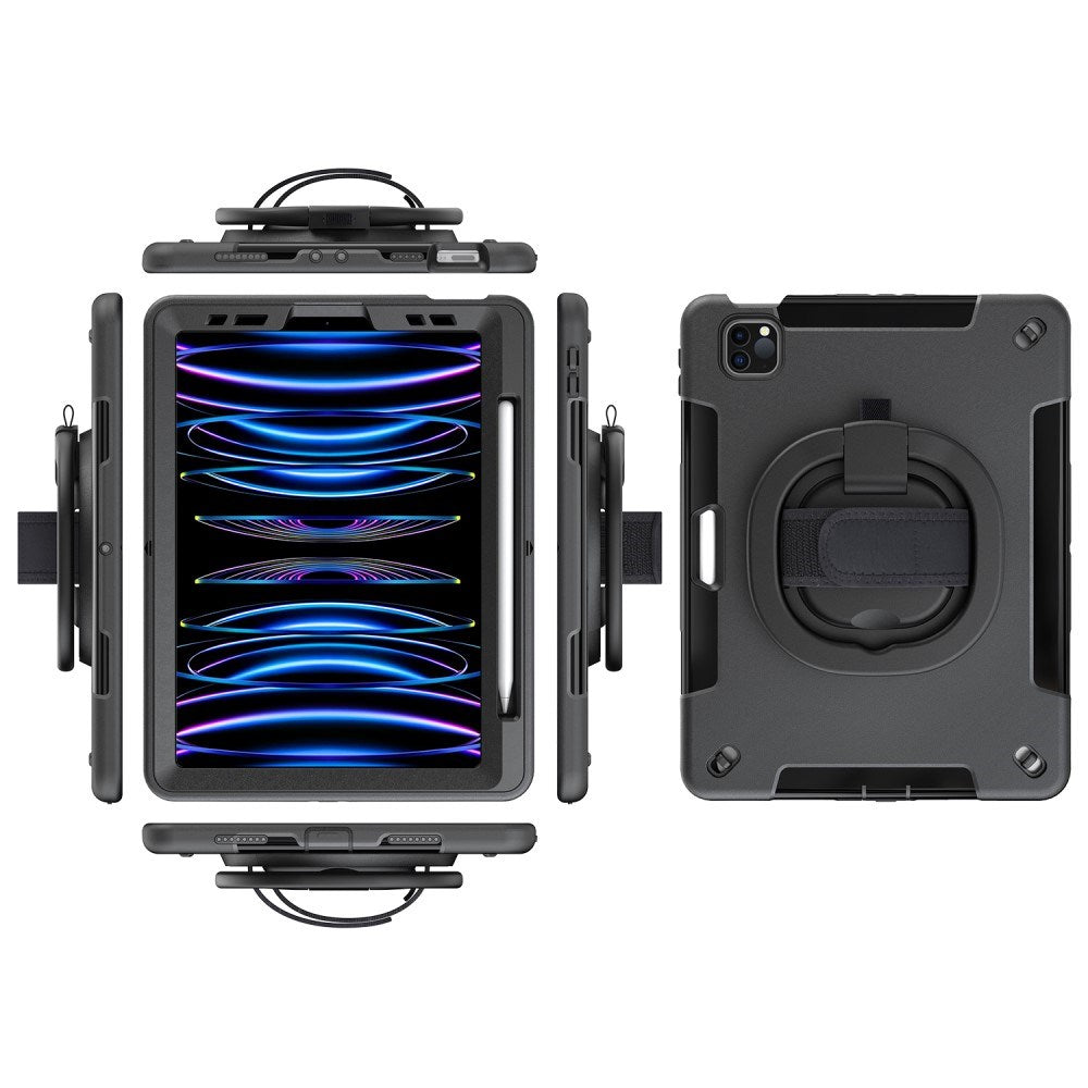 iPad Air 10.9-11" (2025-2020) / Pro 11" (2022-2018) EIDERWOOD Håndværker Cover med Beskyttelsesfilm, Apple Pencil Holder & Håndholder - Sort