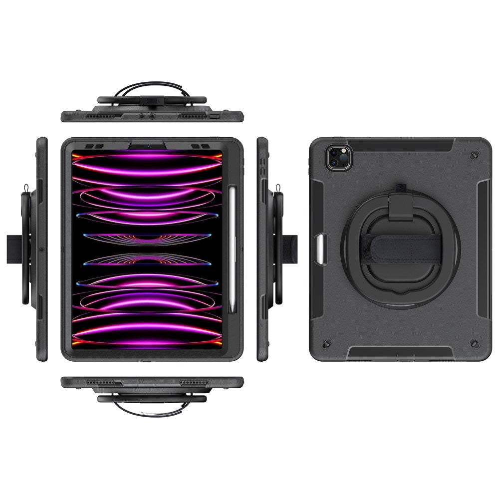 iPad Air 13" (2025 / 2024) / Pro 12.9" (2022 / 2021 / 2020 / 2018) EIDERWOOD Håndværker Cover med Beskyttelsesfilm, Apple Pencil Holder & Skulderstrop - Sort