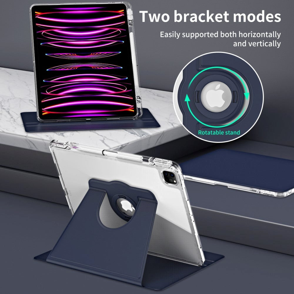 iPad Pro 12.9" (2022 / 2021 / 2020 / 2018) 2 i 1 Hybrid Flip Tablet Cover m. Pen Holder og Kameralinse Beskytter - Blå / Gennemsigtig