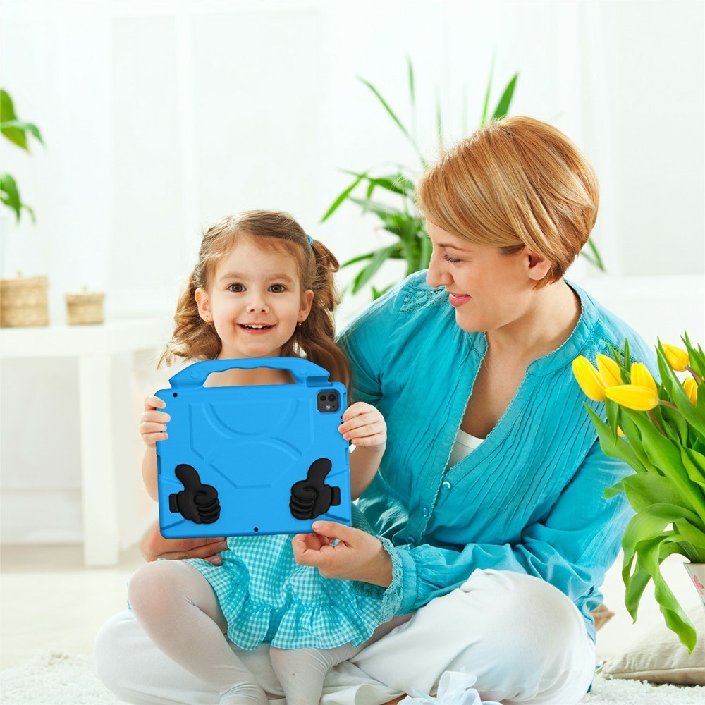 iPad Pro 12.9" (2022 / 2021 / 2020 / 2018) / Air 13" (2025 / 2024) / Pro 13" (2025 / 2024) - EIDERWOOD Børne Cover m. Thumb Kickstand - Blå er i restordre og vil blive sendt, så snart det er på lager igen.