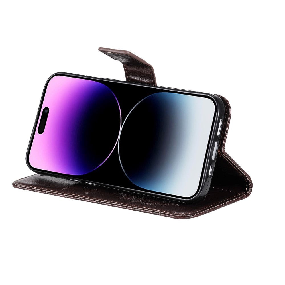 iPhone 15 Pro Max Læder Mobil Cover m. Pung og Strop - Mandala Blomst - Brun