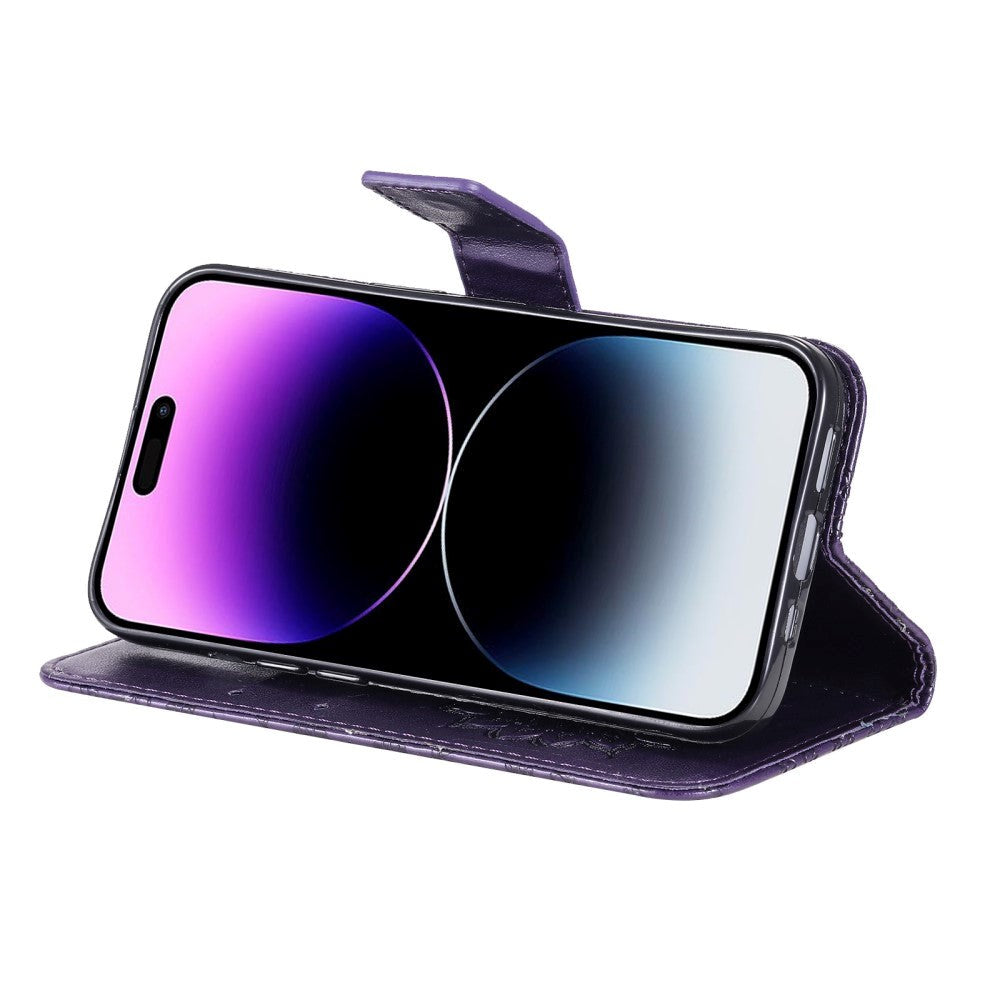 iPhone 15 Pro Max Læder Mobil Cover m. Pung og Strop - Mandala Blomst - Lilla