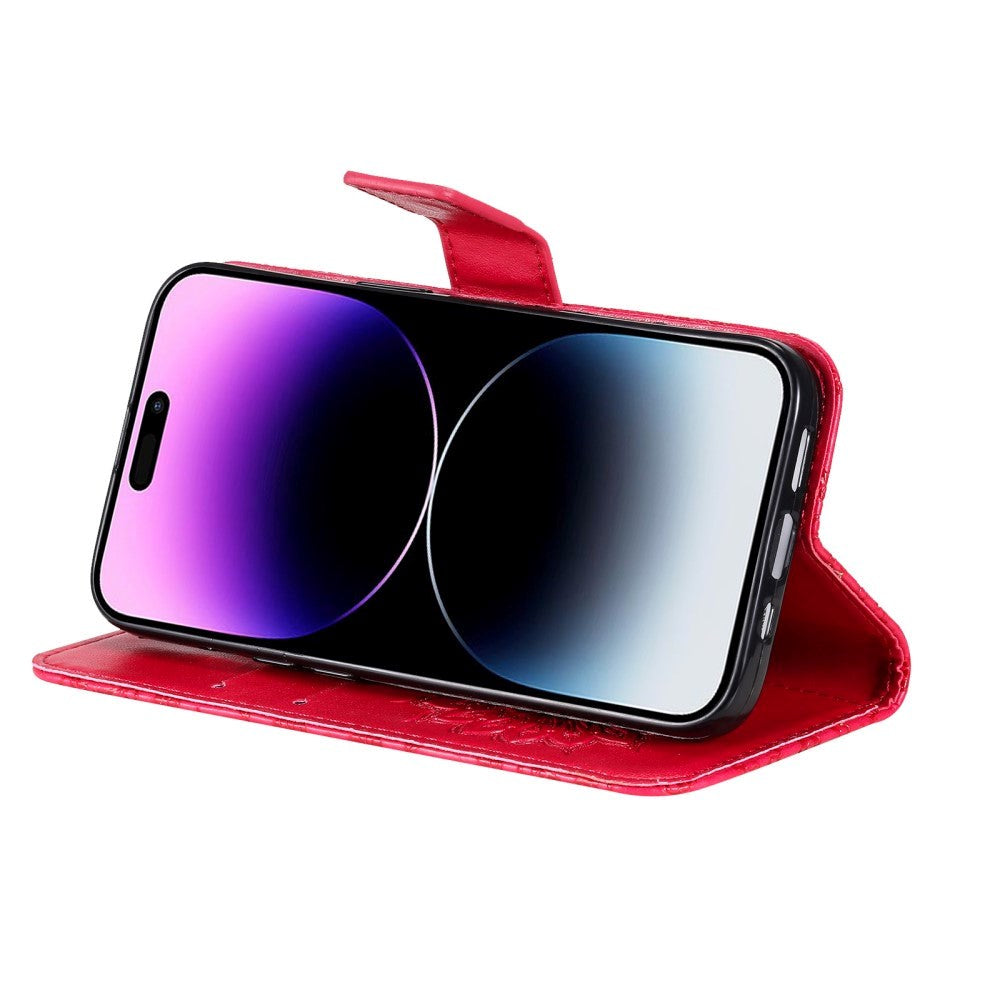 iPhone 15 Pro Max Læder Mobil Cover m. Pung og Strop - Mandala Blomst - Rød