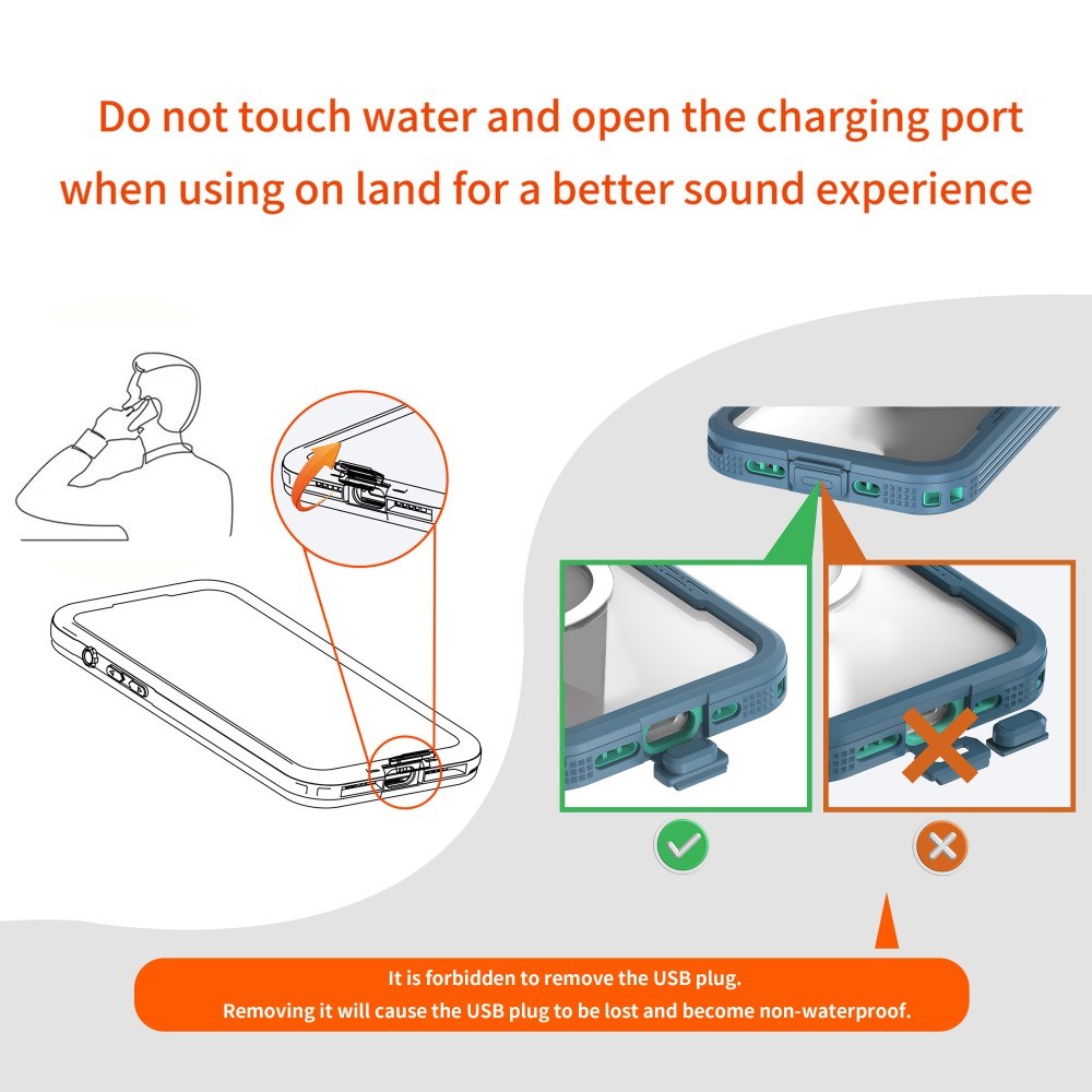 - På grund af det vandtætte design kan lydkvaliteten og lydstyrken blive påvirket, når coveret er monteret.