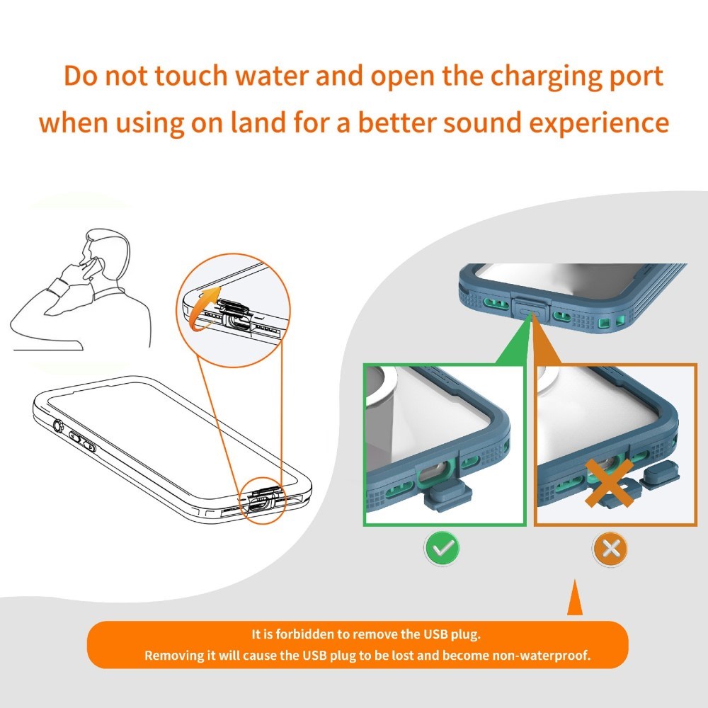 - På grund af det vandtætte design kan lydkvaliteten og lydstyrken blive påvirket, når coveret er monteret.