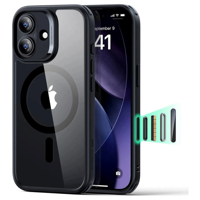 iPhone 17 ESR Classic Hybrid Cover m. Indbygget Camera Control Knap - MagSafe Kompatibel - Gennemsigtig / Sort