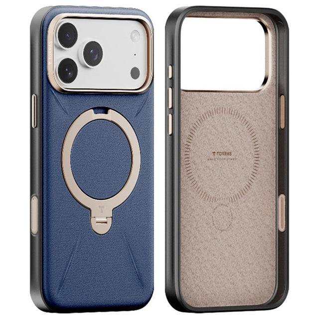 iPhone 17 Pro Max - TORRAS Ostand Spin Kunstlæder Cover m. Kickstand - MagSafe Kompatibel - Blå