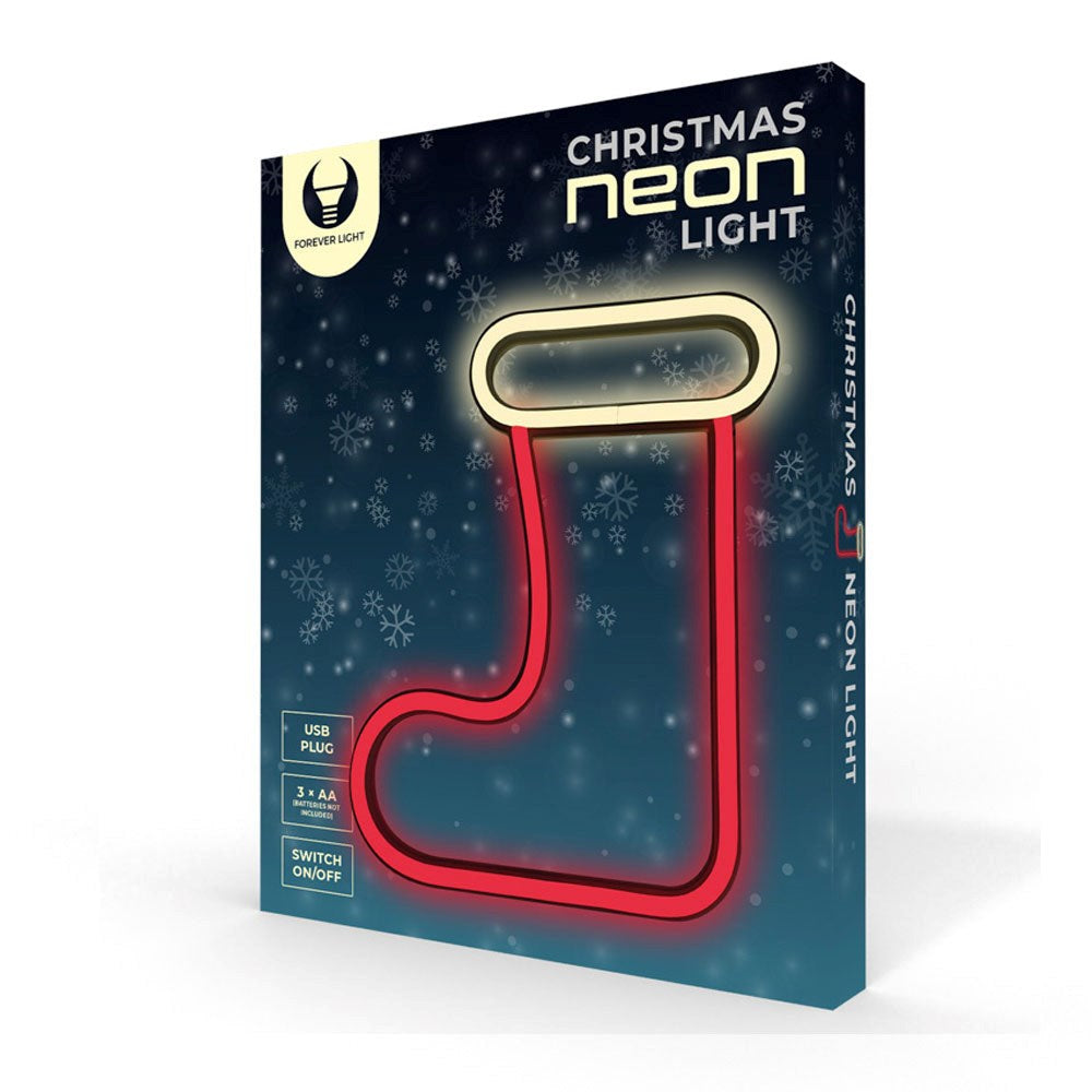 Når julestemningen spreder sig, er et Forever Light LED neon skilt med juletema det ideelle valg for at tilføje ekstra julehygge til dit hjem. Dette LED neon skilt lyser op med en unik farverig glød, der skaber den perfekte atmosfære for julen. Med en lille åbning er det nemt at installere på vægge eller vinduer. Den økonomiske LED-teknologi gør det energivenligt, og det kan nemt betjenes via USB-porten, der har en praktisk tænd/sluk-knap. Skiltet kan også bruges med 3 AA-batterier, hvilket gør det bekvemt, hvis du ønsker at placere det på steder, der er langt fra en strømkilde.