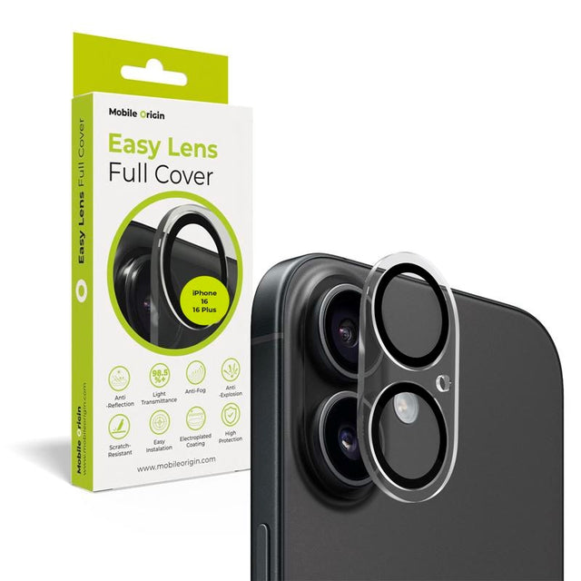 iPhone 16 / 16 Plus Mobile Origin - Hærdet Glas Kameralinsebeskyttelse - Gennemsigtig / Sort Kant