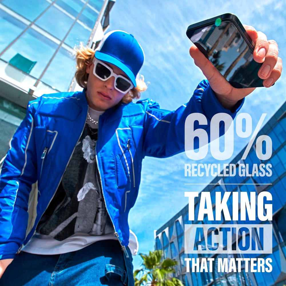 (8) Denne PanzerGlass skærmbeskyttelse er lavet af 60% genanvendt glas, så du får et stærkt glas, der også er bæredygtigt.