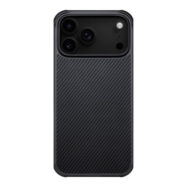 Beskyt din iPhone 17 Pro med PITAKA Aramid ProGuard – et robust og stilrent cover fremstillet i superstærk aramidfiber.