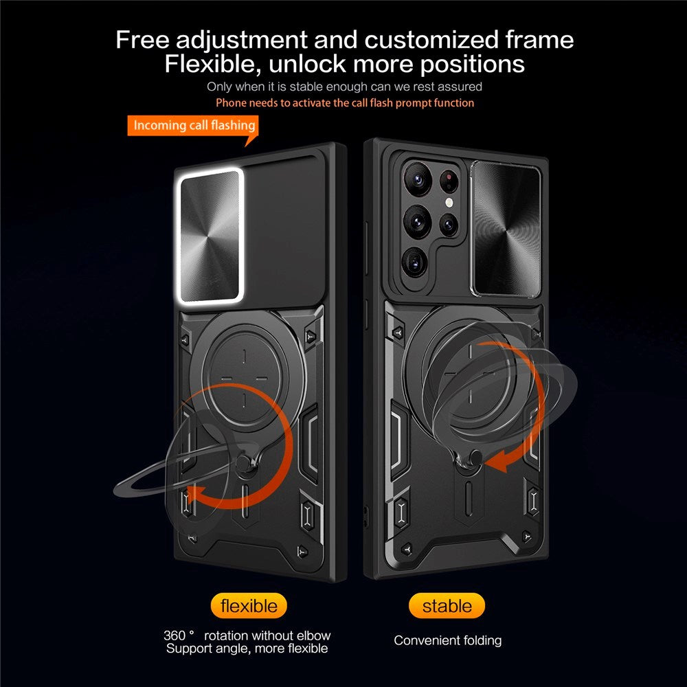 Coveret har en indbygget kameraslider, 360-graders drejelig kickstand til håndfri visning og en integreret jernplade, der gør det kompatibelt med magnetiske bilholdere.