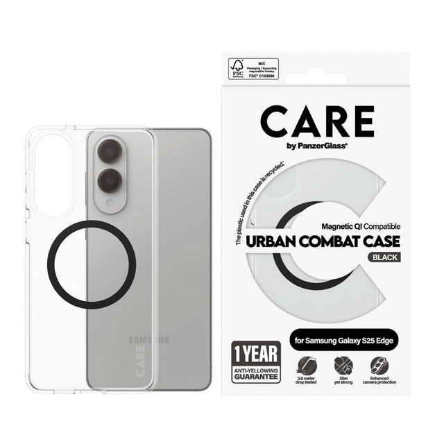 Samsung Galaxy S25 Edge CARE by PanzerGlass FLAGSHIP Urban Combat Case - MagSafe Kompatibel - Transparent / Black