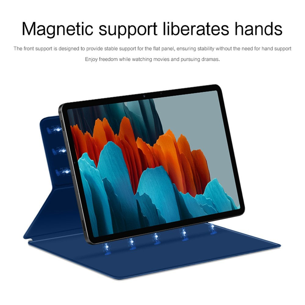 Det magnetiske stativ giver stabile visningsvinkler, mens auto wake/sleep-funktionen hjælper med at spare batteri. Præcise udskæringer og hævet kamerabeskyttelse sikrer fuld funktionalitet, og den indbyggede penholder giver nem adgang til din pen.