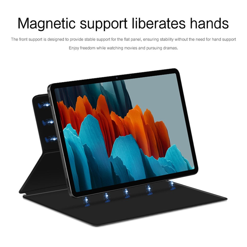Det magnetiske stativ giver stabile visningsvinkler, mens auto wake/sleep-funktionen hjælper med at spare batteri. Præcise udskæringer og hævet kamerabeskyttelse sikrer fuld funktionalitet, og den indbyggede penholder giver nem adgang til din pen.