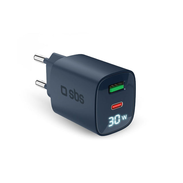 SBS - 30W - LCD Vægoplader - 1x USB-A & 1x USB-C - Blå er i restordre og vil blive sendt, så snart det er på lager igen.