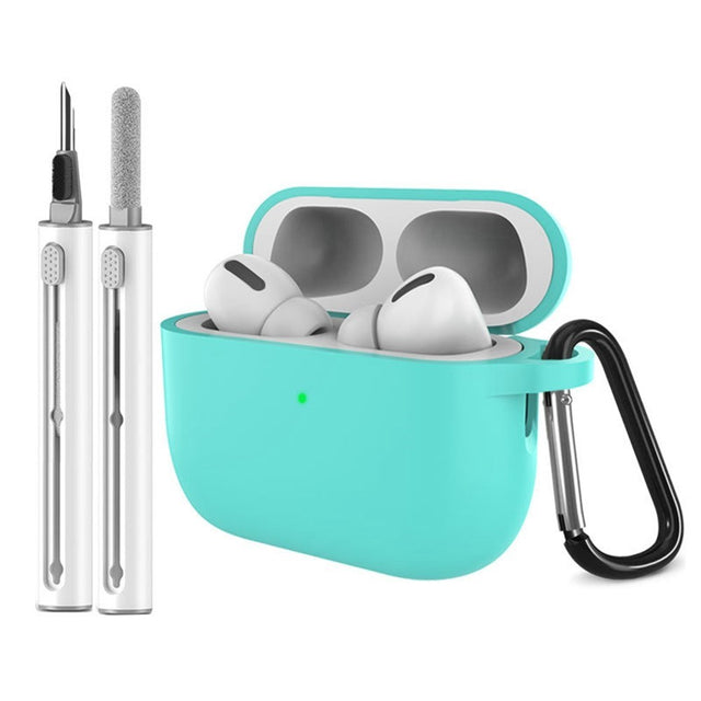 Silikone Cover til Apple AirPods Pro (3. gen.) - Karabinhage & Rengøringspen - Mint Green