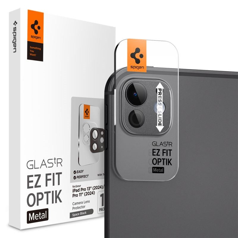 Beskyt din iPad Pro 13" 2024 / iPad Pro 11" 2024 med Spigen's kameralinsebeskytter i 9H hærdet glas, der sikrer mod ridser og stød. Med EZ Fit bakken monteres den nemt og præcist. Beskytteren giver klare billeder uden blitzrefleksion og passer perfekt til enheden for et elegant look.