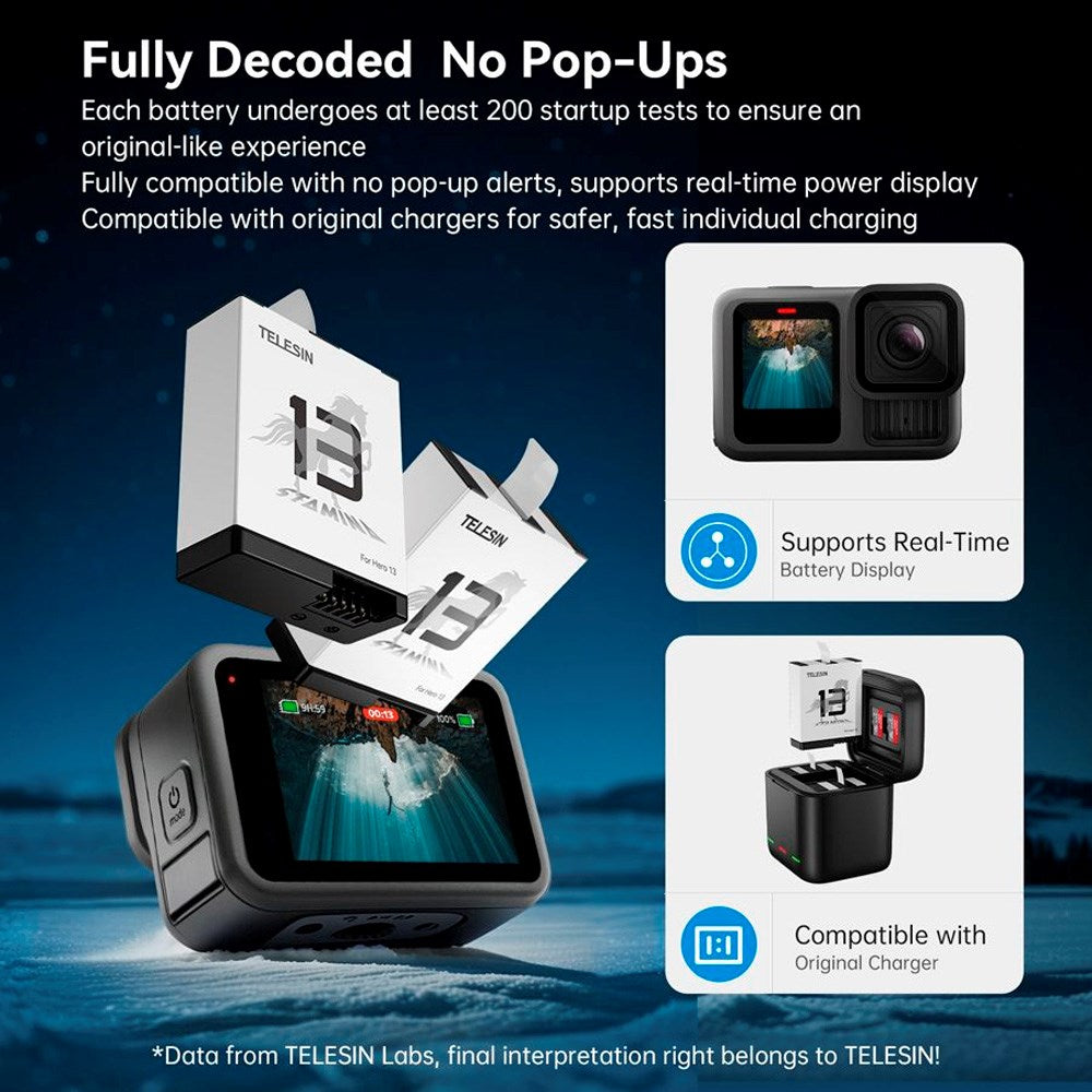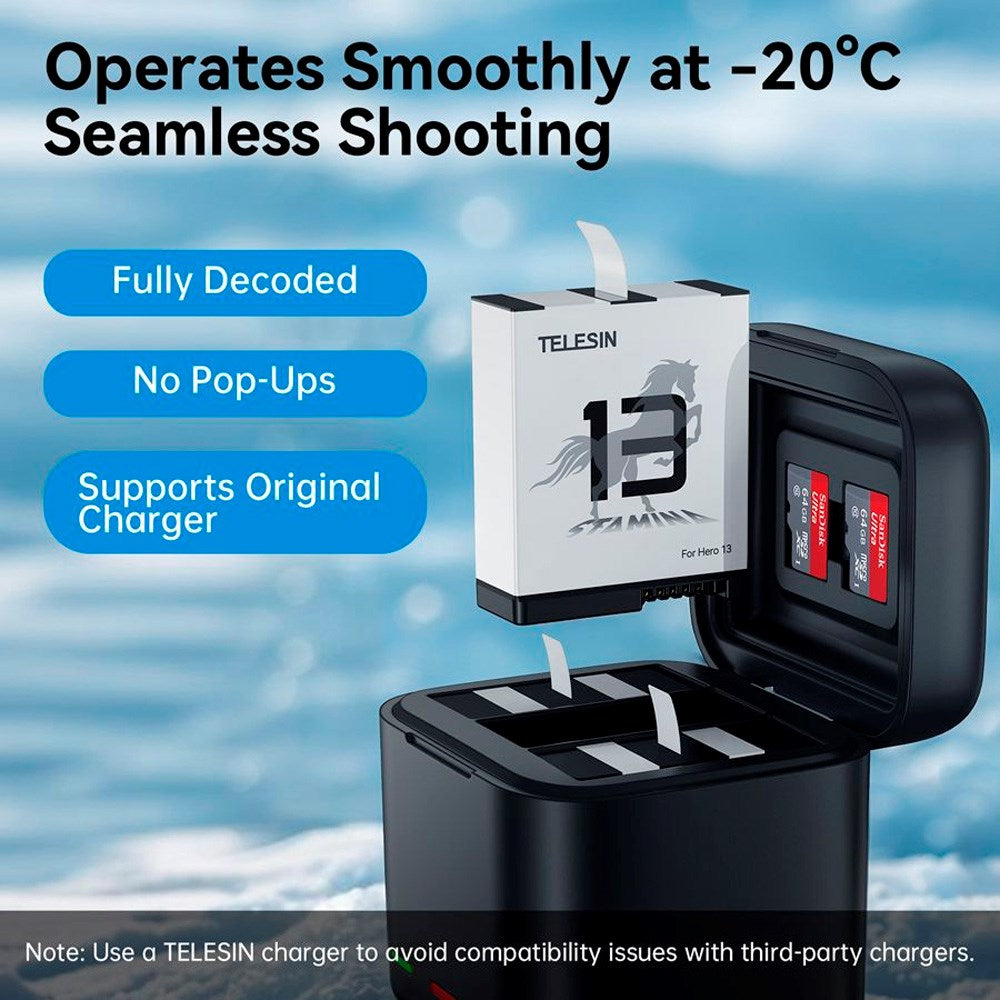 Mere strøm til dine eventyr med TELESIN Stamina Batteri til GoPro Hero 13.