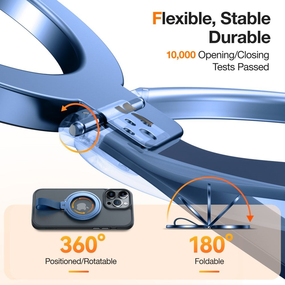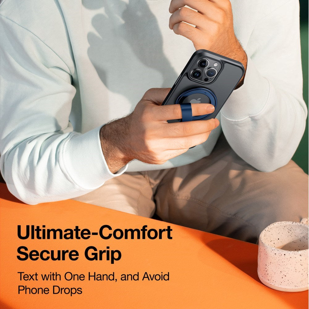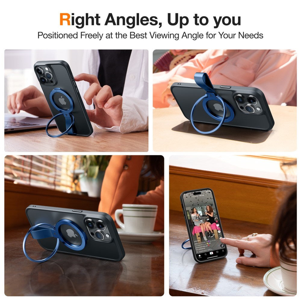Bred Kompatibilitet: Fungerer med MagSafe-kompatible covers; metalring til ikke-magnetiske covers medfølger for kickstand og greb-funktionalitet.