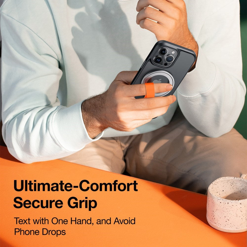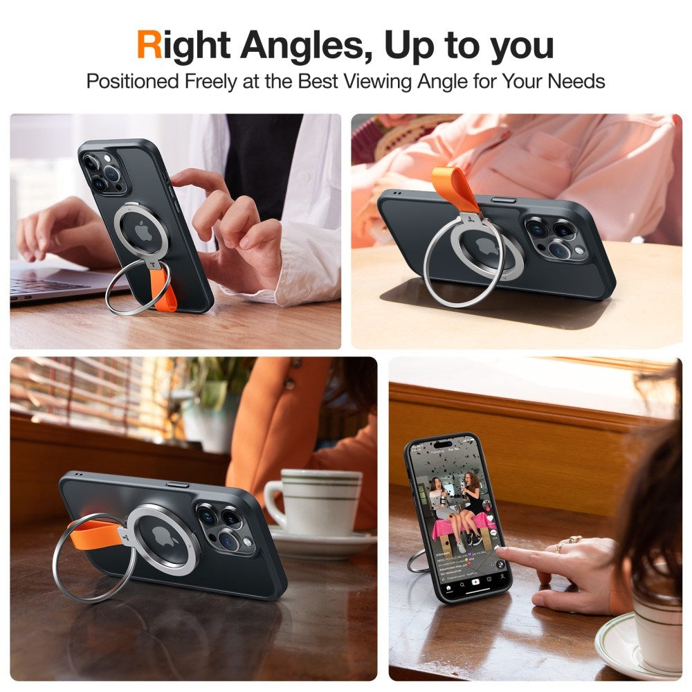 Bred Kompatibilitet: Fungerer med MagSafe-kompatible covers; metalring til ikke-magnetiske covers medfølger for kickstand og greb-funktionalitet.